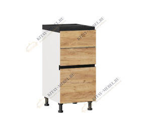 Тумба кухонная 600 3 ящика ЛЮКС (4) Шервуд 281.600.000.013 (Чёрный/Дуб золотой)