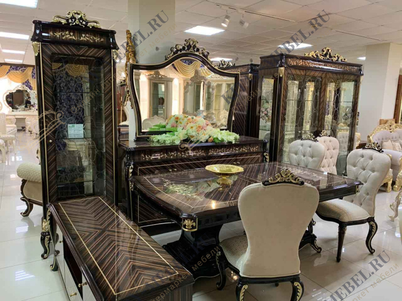 4ехдв. Витрина + Комод с зеркалом + Стол 2,0 + 6 Стульев