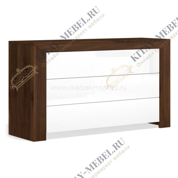 Комод в спальню из модульной программы мебели Blade имеет три выдвижных ящика, оснащенных системой открытия «Push to Open». Изделие выполнено в древесном декоре орех Коламбия с глянцевыми фасадами белого цвета.
