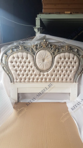 Кровать двуспальная Рафаэлла (слоновая кость/матовый), 180 на 200, мягкая спинка, МДФ, ППУ, каретная стяжка, светлая