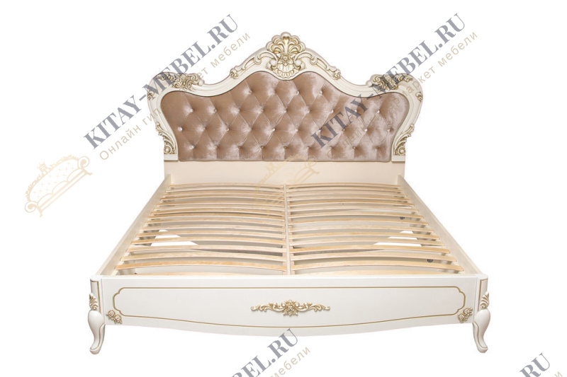 Кровать двуспальная Магдалина 1800/2000 мм (беж), МДФ, мягкая спинка в капитоне