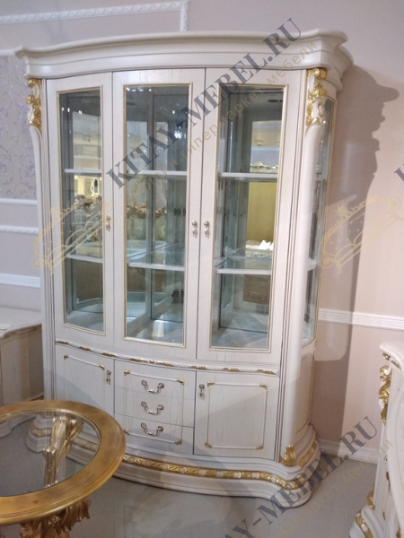 ВИТРИНА 3-ДВЕРНАЯ (С КОРОНОЙ) БЕЛЫЙ С ЗОЛОТОМ ИЗАБЕЛЛА CARPENTER 208