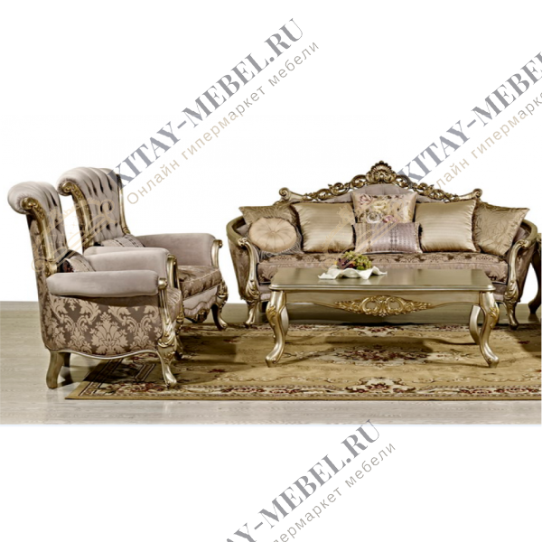 Мягкая мебель выполнена в классическом стиле. Материал изготовления массив, отделка ткань. Использование в декоре неповторимых тканей, резных элементов, украшенных золотом, придает мебели королевское величие. Роскошь и уют создают аксессуары к мягкой мебели — подушки из превосходной ткани.