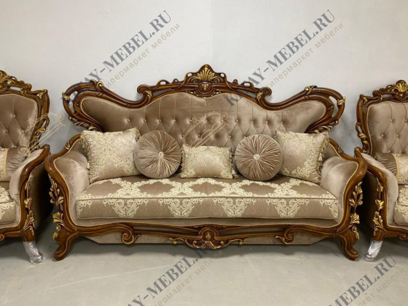 Мягкая мебель Анкара 3+1+1 (ткань №1, декор — орех с золотом)