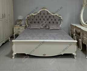 Кровать Бьянка двуспальная — 180×200, МДФ, слоновая кость, патина, жаккард, капитоне