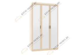 Шкаф 3-дверный для платья и белья (с зеркалом) Тиффани премиум (слоновая кость/серебро)